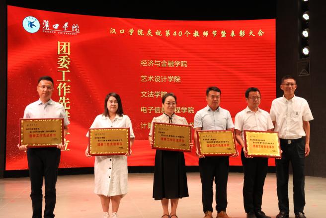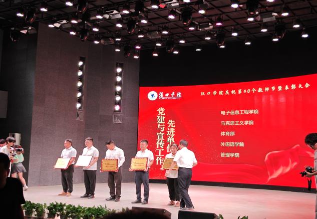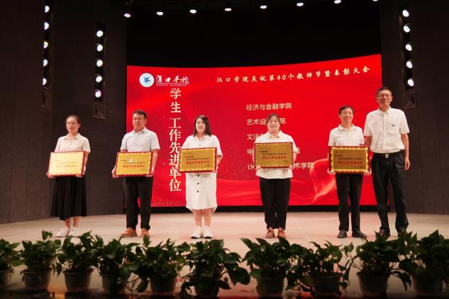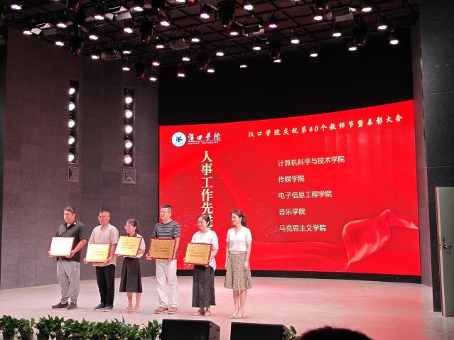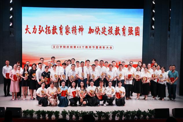 (通讯员:王俊豪)“弘扬教育家精神,加快建设教育强国”,2024年9月10日上午,值此第40个教师节到来之际,我校在音乐厅庆祝2024年教师节暨表彰大会隆重举行。我院荣获“教学工作先进单位”、“党建与宣传工作先进单位”、“人事工作先进单位”、“学生工作先进单位”“团委工作先进单位”五项集体荣誉。同时学院多位教职工荣获“师德标兵”、“优秀管理者”、“汉院好老师”、“优秀教育工作者”、“优秀辅导员”、“优秀指导教师”等多项个人荣誉称号。